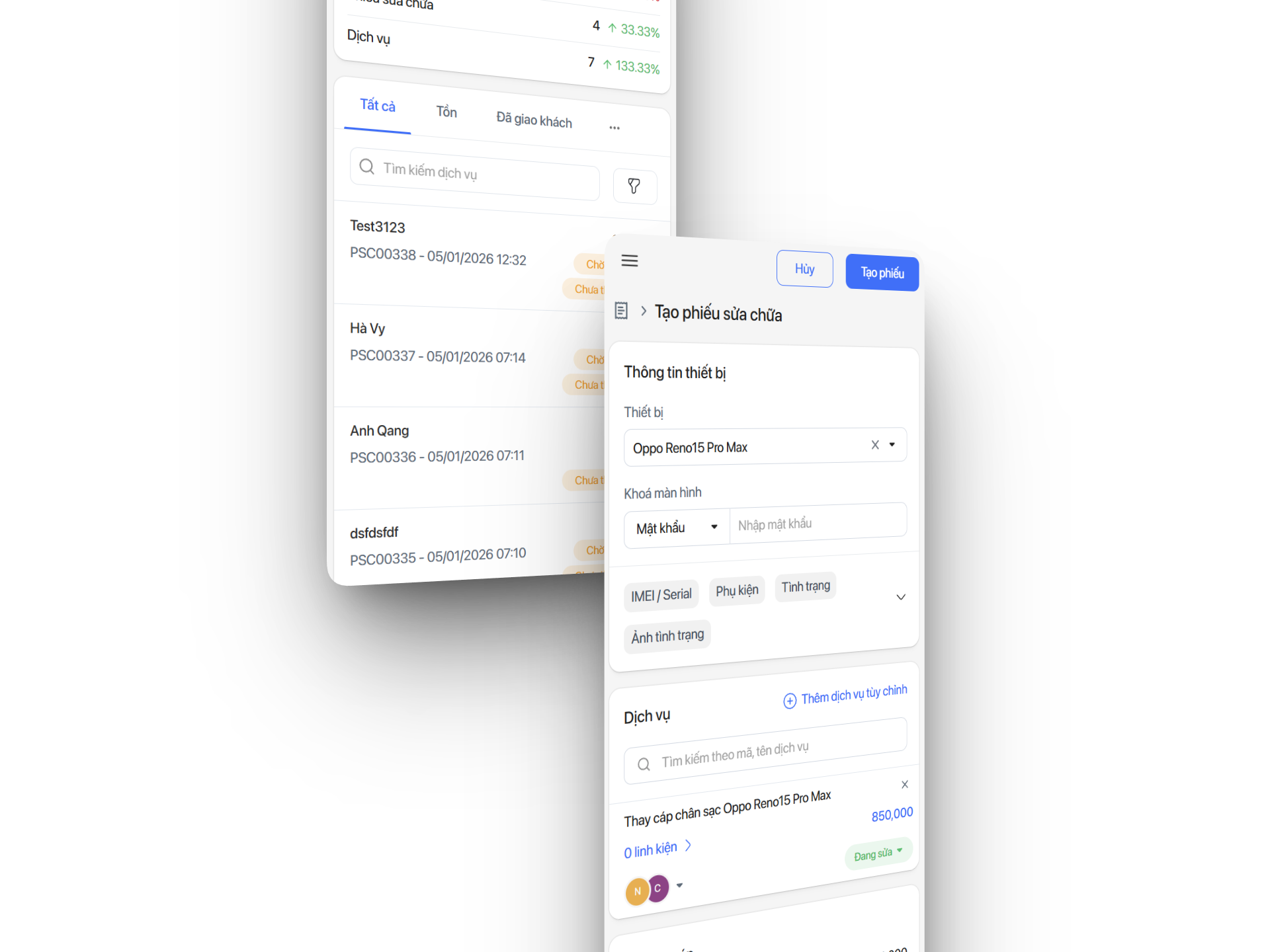 Tính năng quản lý bán hàng và quản lý sửa chữa chuyên biệt cho cửa hàng điện thoại, điện máy